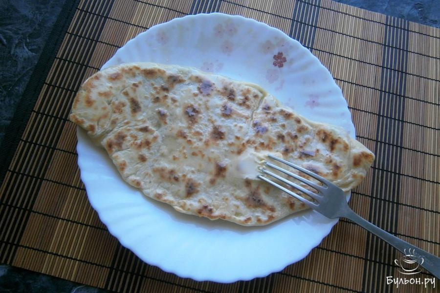 10. Лепешку сложить как чебурек, тщательно залепить края. Саму лепешку аккуратно раскатать скалкой, чтобы она была еще тоньше.