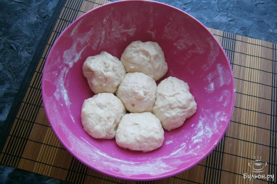 5. Тесто разделить на 6 кусочков, скатать их в шарики, сложить в миску, отправить в холодильник на пол часа.