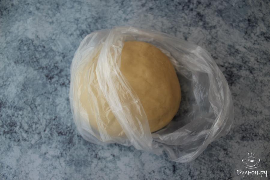2. Для теста в чаше смешать яйцо, соль (0,5 ч. л.) и растительное масло (3 ст. л.). В другую чашу просеять муку. Соединить муку с яичной смесью в миске, перемешать. Влить кипяток и замесить тесто. Готовое тесто переложить в пакет и дать отдохнуть 20 минут, после этого тесто станет мягким и эластичным.