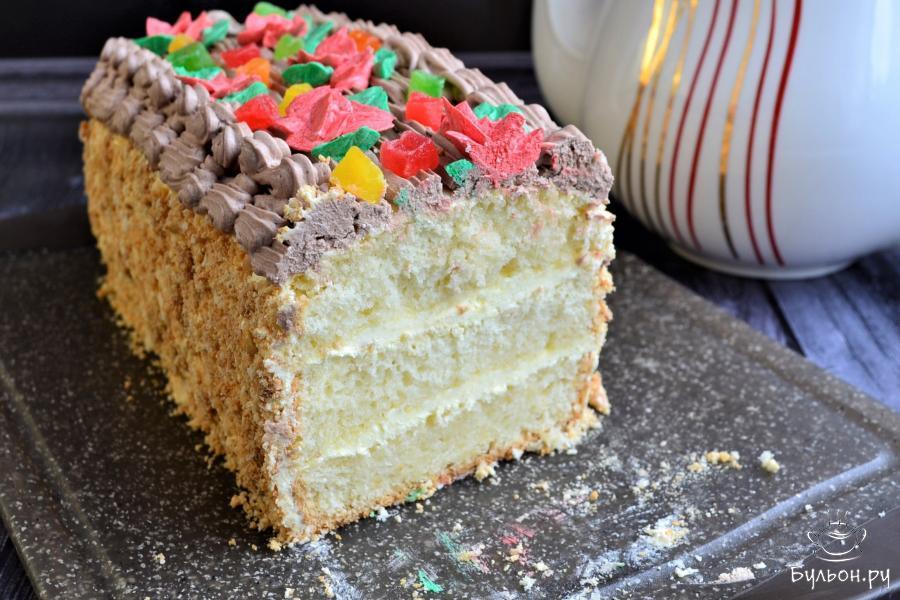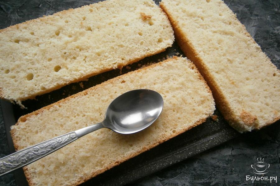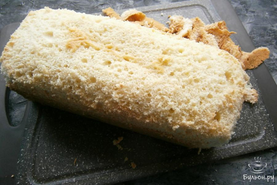 13. У отлежавшегося бисквита срезать все острые края сверху, обрезки подсушить и оставить для обсыпки торта.