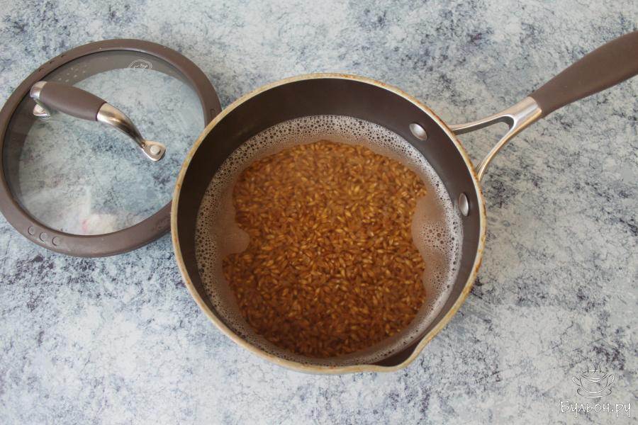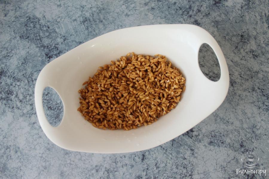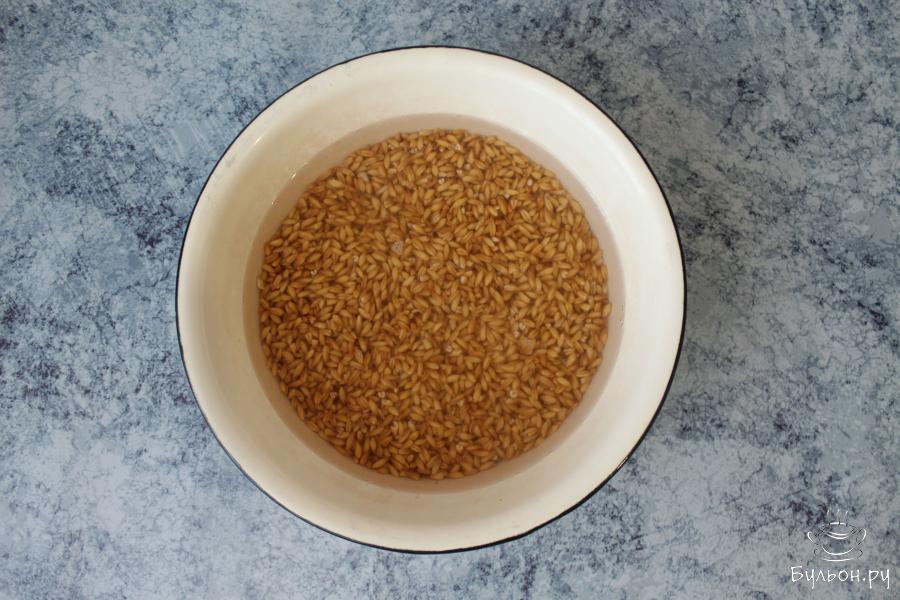 1. Цельную полбу сначала необходимо перебрать, убрав нецельные злаки и мусоринки. Затем промыть до чистой воды. Залить водой и оставить на ночь замачиваться.