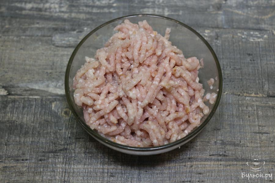 3. Теперь готовим мясорубку к работе и пропускаем через нее кусочки мяса, лук, отжатый от воды белый хлеб. Вместо мясорубки можно воспользоваться и блендером, выложив все перечисленные продукты в его чашу и измельчив их. Готовый фарш перекладываем в миску, перчим и солим его, перемешиваем.