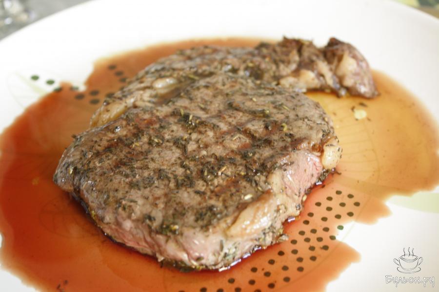 Стейк рибай готовится из самых "мраморных" кусков премиальной говядины: толстого края без кости. С одной стороны блюдо очень простое в приготовлении, но с другой требуется практика и "притирка" к конкретной посуде/плите/производителю мяса, чтобы достигать нужного уровня прожарки и сочности. Можно пользоваться специальным термометром для мяса, доводя до нужной температуры, но в данном рецепте куски жарятся просто до появления сока. Для такого способа приготовления куски должны быть достаточно сочными. Таким способом у меня получается прожарка "medium". Рекомендуемый гарнир - овощи гриль, румяный картофель, рис. Из напитков, конечно же, красное сухое вино.