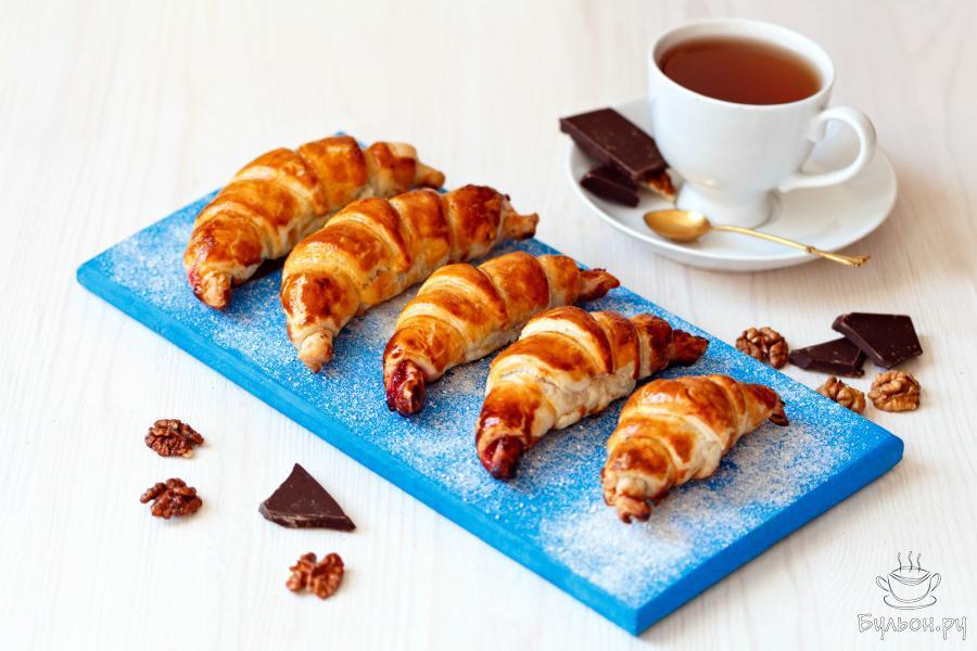 Круассаны из слоеного теста - простой и вкусный десерт, с приготовлением которого справиться даже начинающий кулинар. Минимум компонентов и всего несколько минут на приготовление, а результат никого не оставит равнодушным. Золотистые, воздушные, свежевыпеченные круассаны, с вкуснейшей шоколадной и ягодной начинкой - роскошное дополнение к домашнему чаепитию и завтраку.