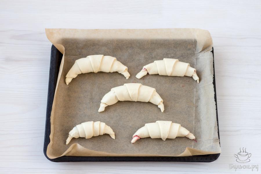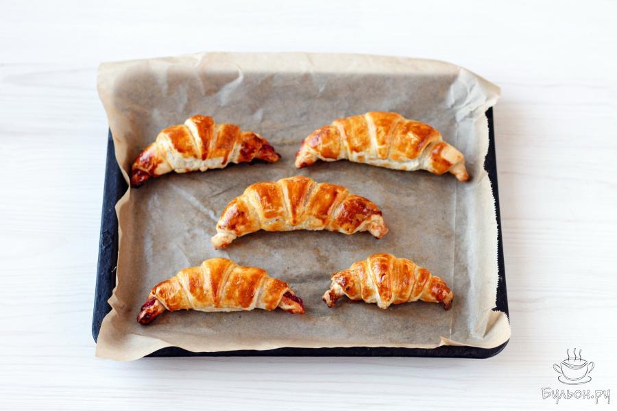 8. Поместите подготовленные круассаны в разогретую до 200 градусов духовку и выпекайте 15-20 минут, до золотистого цвета.