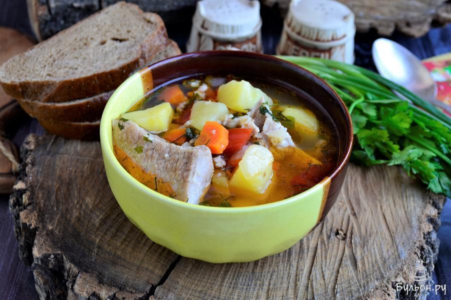 Предлагаю вам попробовать нереально вкусный полевой суп, который готовится с пшеничной крупой и мясом свинины. Особенно хорош этот суп будет, если его приготовить в котелке на природе, он получится с дымком и будет еще вкуснее. Но если нет такой возможности, смело готовьте на газу, он будет не менее вкусным. Можно вместо обычной соли добавить в суп - копченую, также, обычную паприку заменить копченой паприкой и аромат костра вам обеспечен. Суп очень наваристый, насыщенный и сытный, мужчины точно будут довольны, попробуйте.