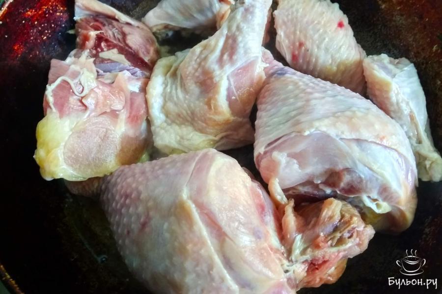 Курица чахохбили - это традиционный грузинский рецепт. Существует масса интерпретаций этого известного блюда, но все же основными и самыми важными компонентами являются курица, специи и томаты. В данном рецепте есть еще один важный по своим вкусовым характеристикам ингредиент - это баклажан. Курица чахохбили, тушеная с баклажаном и другими овощами, отличается от классического рецепта и своей консистенцией (более крупные куски мяса), и отсутствием свежей зелени. Вместо нее используется сухая зелень, дающая более глубокий аромат и вкус курице.