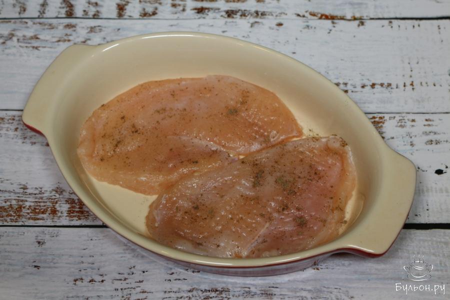 2. Вторым шагом следует отбить их молотком, посолить и поперчить их по своему вкусу. После чего выложить в емкость, в которой они будут запекаться.