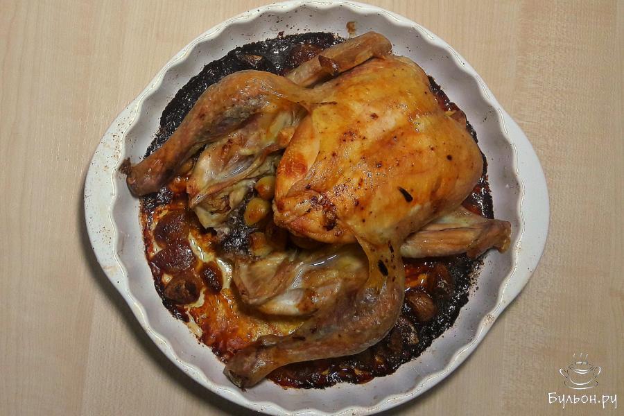Все на свете любят вкусную запеченную курочку: такую ароматную, румяную, с хрустящей корочкой. В нашей семье особенно популярна печеная курица на 40 дольках чеснока. Фишкой рецепта является то, что птица пропитывается ароматной чесночно-масляной смесью. Натирать курицу чесноком не приходится (вследствие чего он во время готовки не подгорает). В итоге получается нежнейшее, ароматное куриное мясо, которое буквально тает во рту.