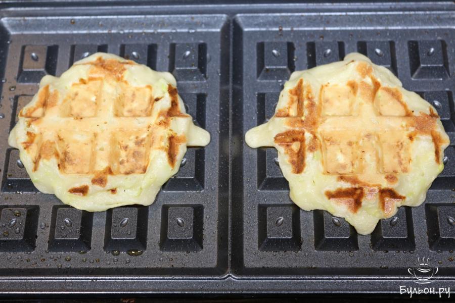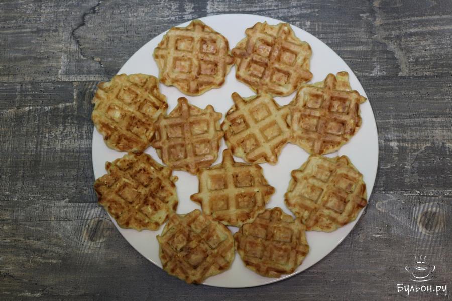 6. Приготовленные вафли из кабачков подаем на стол еще горячими, пока у них есть та самая необходимая вафельная корочка.