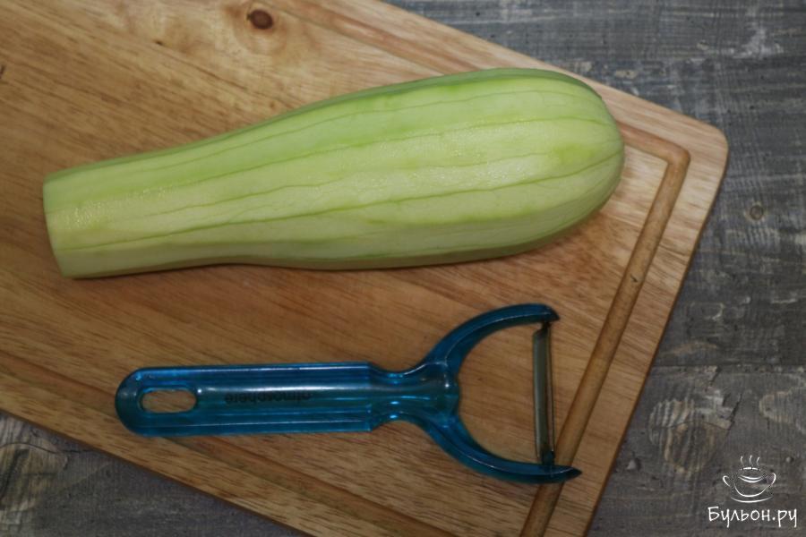 1. Кабачки или кабачок (если большой) моем и чистим от кожуры. Трем кабачки на терке, используя ту, в которой крупные отверстия.