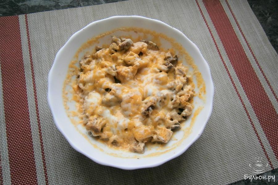 8. Вот и все, за 12 минут замечательная французская закуска - жульен с курицей готова, ее нужно подавать сразу же к столу. Приятного аппетита.
