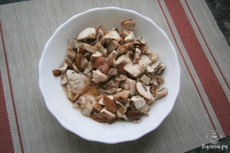 4. Отправить все в СВЧ еще на 4 мин., не меняя мощности. Через данное время выделится много жидкости из грибов, ее нужно просто слить.