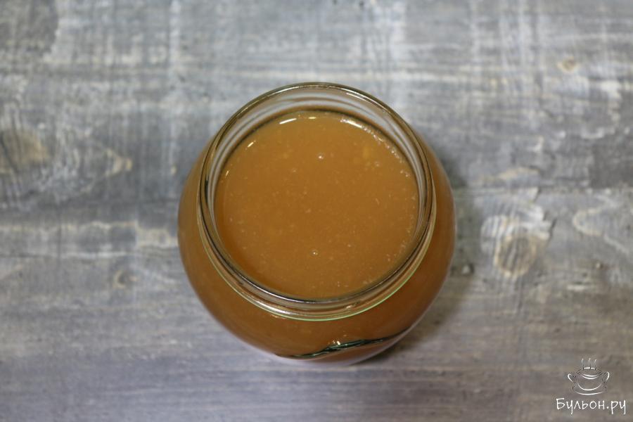 7. В кастрюлю перекладываем пюре из яблок и туда же вливаем ранее выжатый сок. Кастрюлю вновь ставим на конфорку, начинаем снова нагревать содержимое, только уже не доводим до кипения. На поверхности сока через время начнет появляться пенка. Снимаем ее ложкой с дырочками. После чего выключаем конфорку.