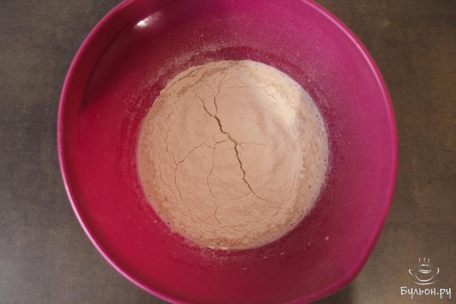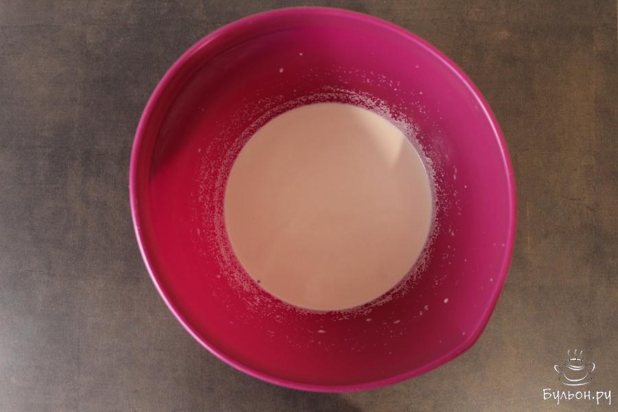 1. В чуть-чуть подогретом молоке растворить сахарный песок, сухие дрожжи и 50 г муки из общего количества. Прикрыть тряпочкой и оставить на небольшое время в стороне, минут на15. За это время дрожжи должны начать свою работу.