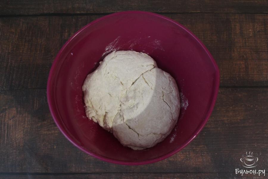 1. В воде комнатной температуры растворяем соль (0,5 ч. л.), а затем начинаем вводить в подсоленную воду просеянную пшеничную муку. Замешиваем тесто. Чтобы оно стало эластичным, в тесто необходимо добавить жир.