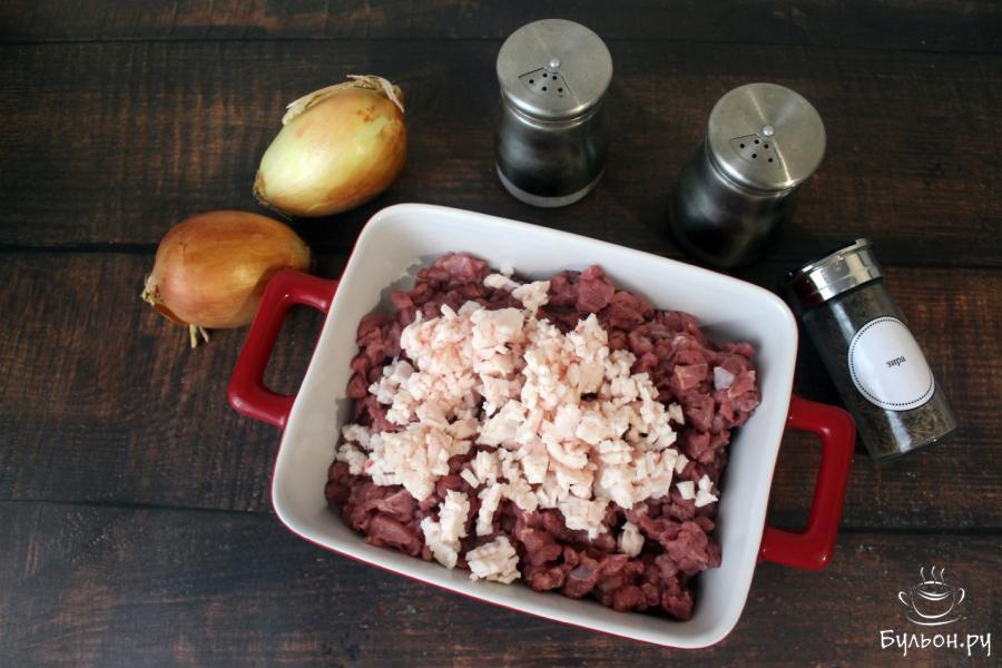 5. Курдючный жир (150 гр.) также очень мелко нарезаем. Для того, что бы оно легко нарезалась, его можно перед этим ненадолго убрать в морозилку.