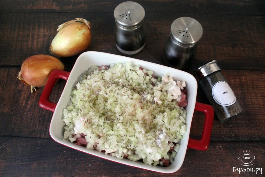 6. Лук придает самсе сочность, поэтому его тоже нельзя пропускать через мясорубку, сок должен остаться в самом луке. Следовательно, его мы тоже нарезаем ножом.