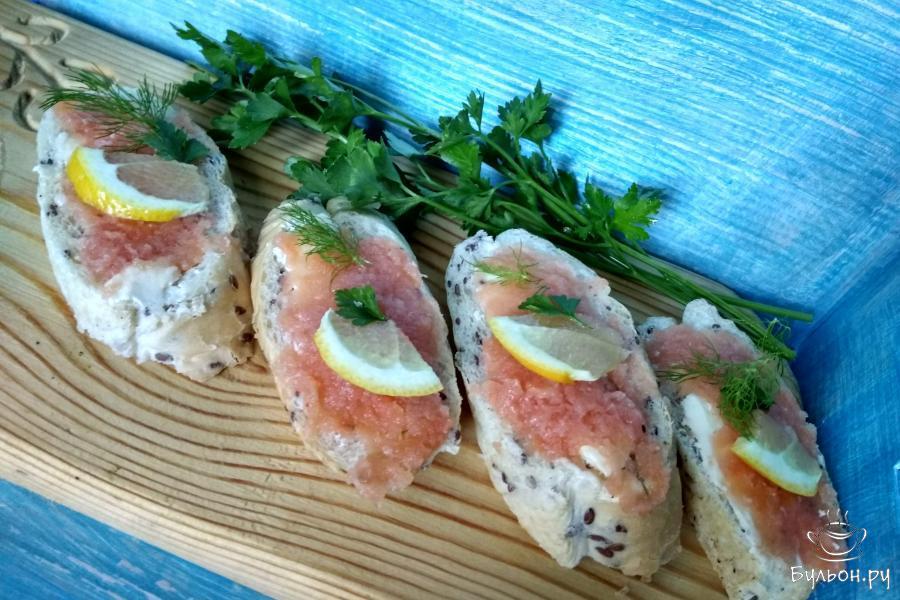 5. Бутерброды со сливочным маслом и измельченным мясом слабосоленого сига - это отличный, полезный и сытный завтрак. Приятного аппетита!