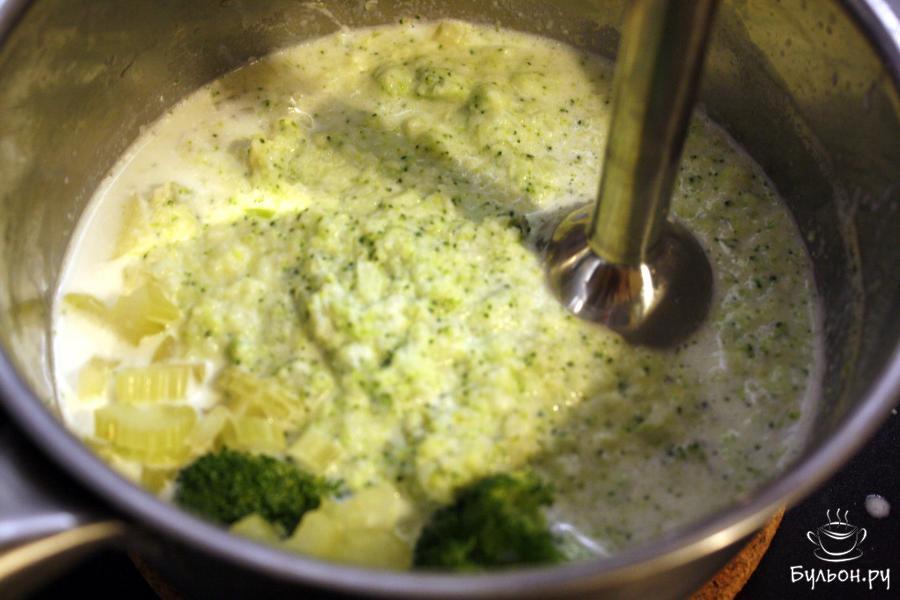 3. Брокколи промыть, разделить на соцветия. Добавить к картофелю, варить еще 5 минут. Бульон слить в отдельную емкость.