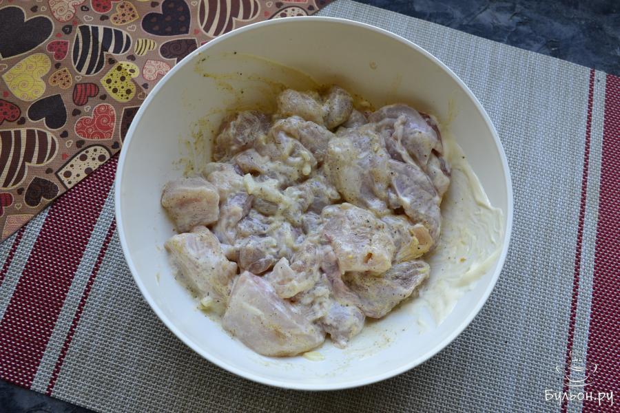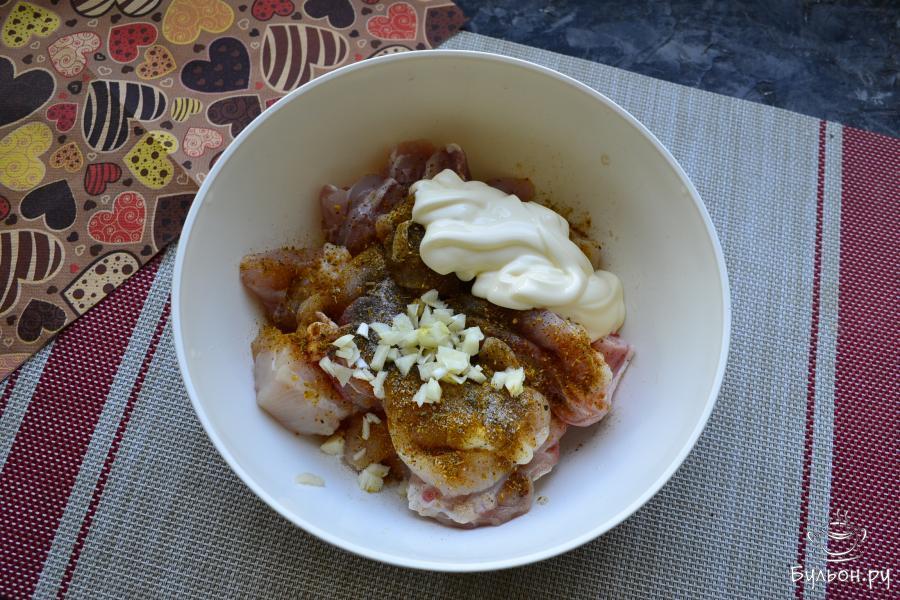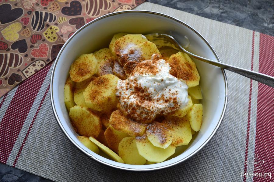 5. Добавить универсальную приправу или приправу для овощей, сметану, соль и немного перца. Также, перемешать все и оставить на такое же время.
