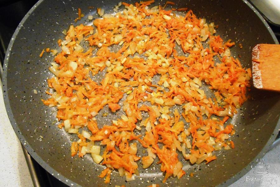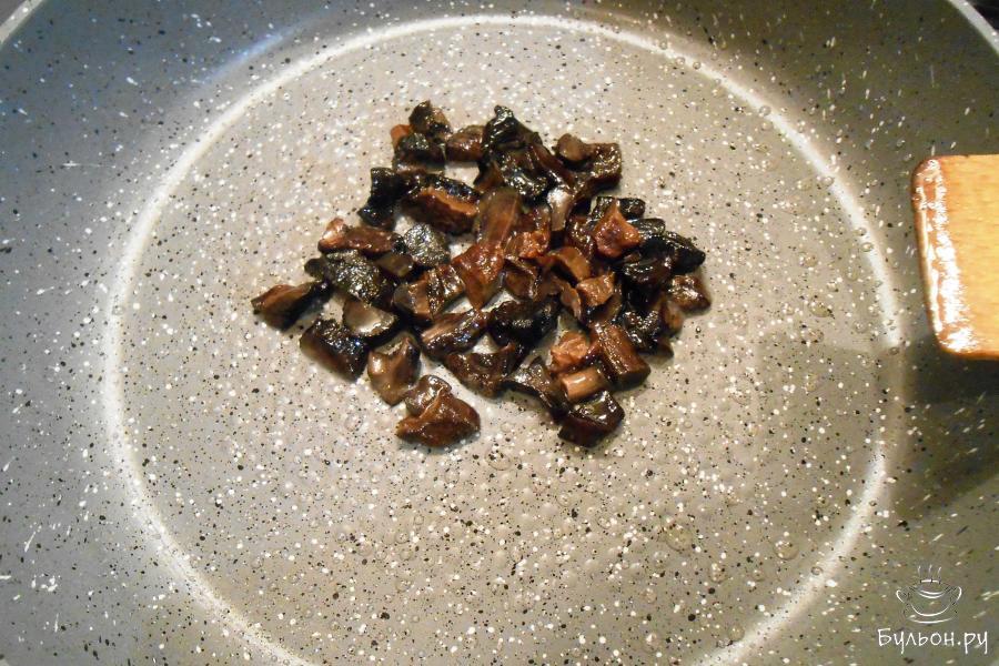3. Грибы нарезать небольшими кусочками и обжарить на сковороде на растительном масле в течении 10 минут, помешивая.