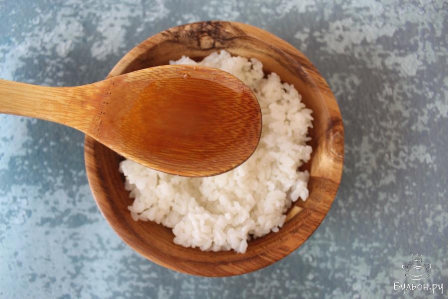 2. Смешать воду с рисовым уксусом. Эта вода будет использоваться для смачивания пальцев и ладоней рук при лепке сяке маки. Таким образом, рис не будет оставаться на руках.