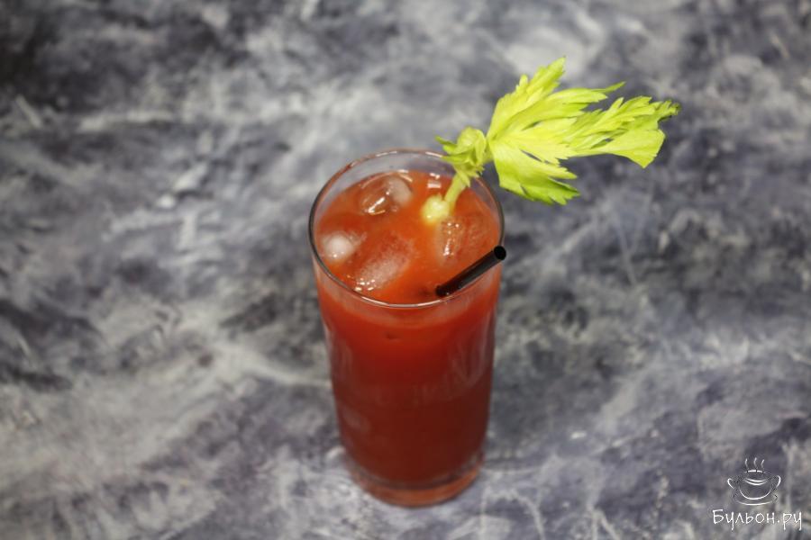 6. В стакан с Кровавой Мэри устанавливаем палочку сельдерея и трубочку, из которой пьется коктейль. Домашняя Кровавая Мэри готова к употреблению.