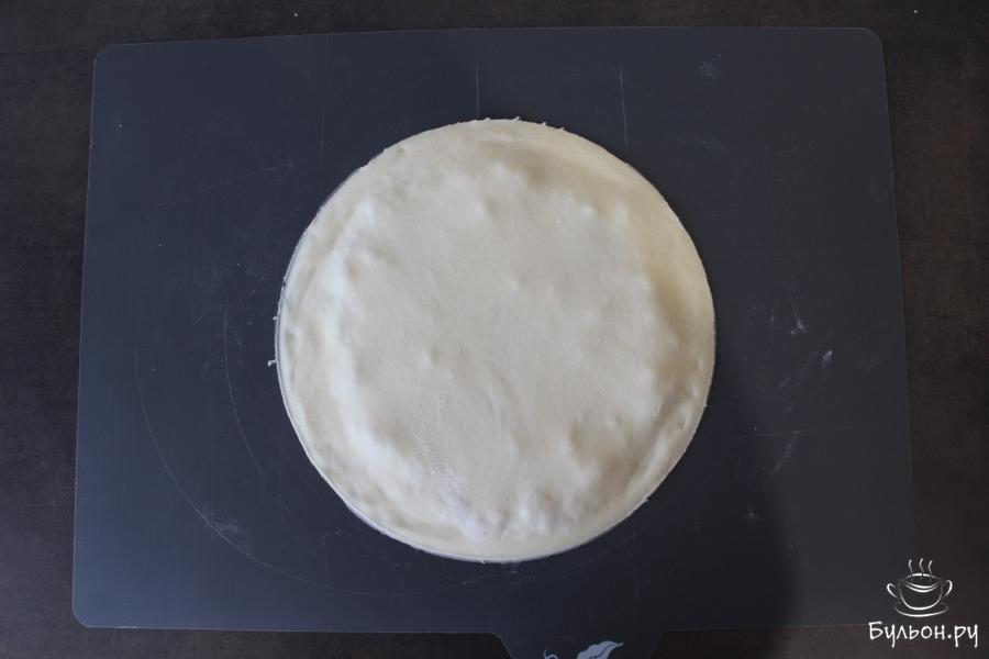 6. Из следующего кусочка раскатать еще одну лепешку, ей накрыть лепешку с фаршем, защипнуть края, для большей аккуратности срезать края ножом.