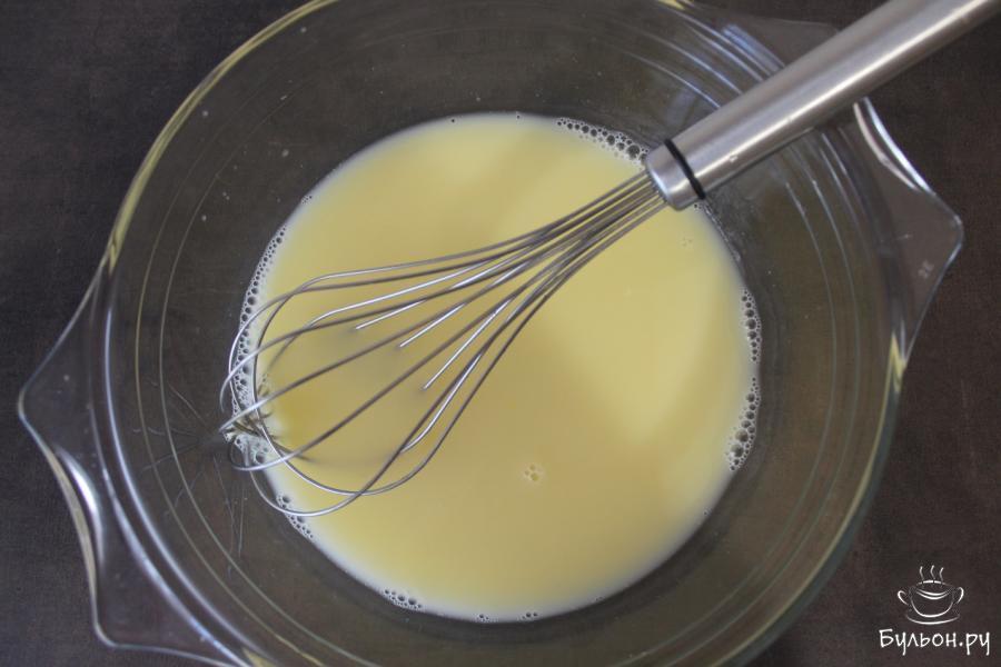1. В чуть теплую водичку вбить куриное яйцо категории С1, влить уксус 9% и добавить 0,5 ч. л. соли. Взбить венчиком.