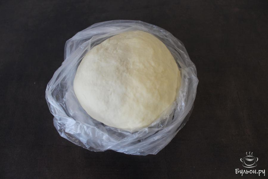 3. Когда тесто соберется в один ком, влить 1 ст. л. рафинированного масла и вымешивать тесто руками 10 минут. Шар теста переложить в пакет и оставить в нем на 15 минут.