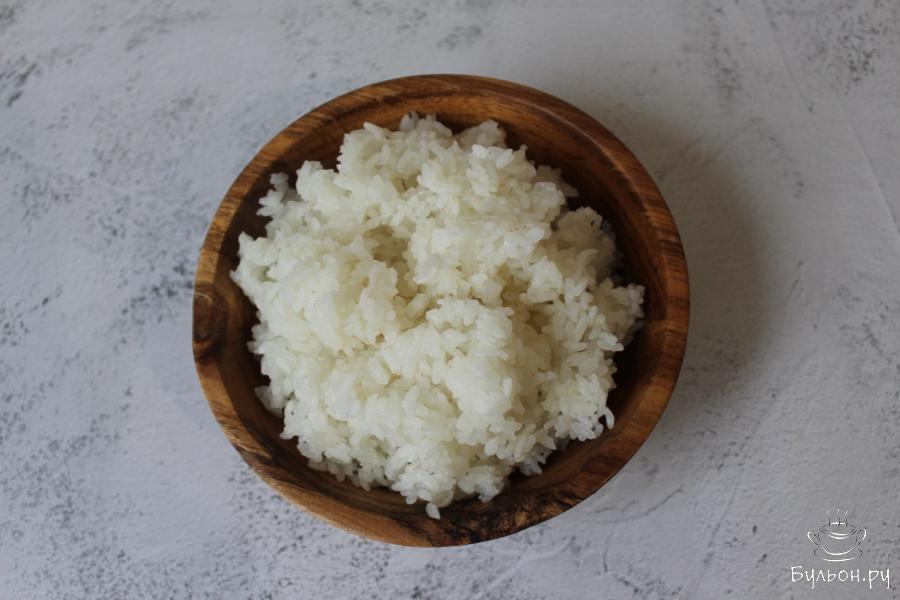 11. Чтобы легче было работать с липким рисом, смешайте воду с уксусом рисовым. Воды должно быть в 3 раза больше.