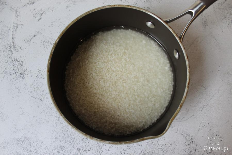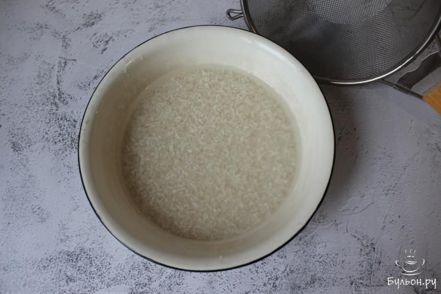 1. Первым делом промойте тщательно, но в то же время аккуратно, рис, пытаясь не повредить зерна. А затем, выбрав сито с мелким решетом, откиньте рис на дуршлаг, таким образом уйдет вода.