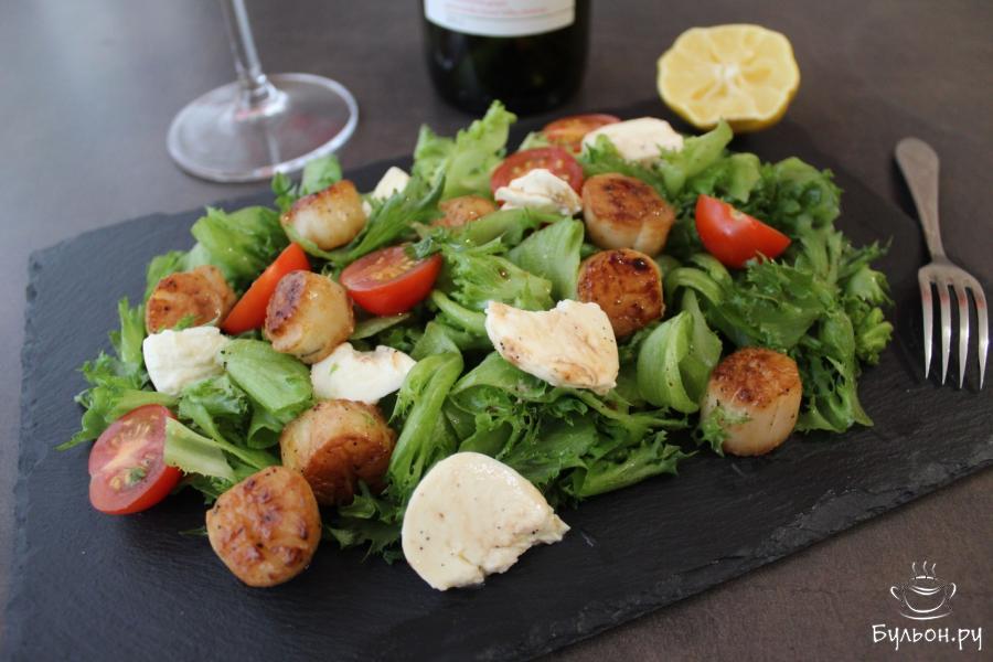 Сегодня я хочу поделиться очень вкусным и полезным салатом с морскими гребешками. Мясо самих гребешков очень вкусное и нежное, оно обладает сладковатым привкусом, а в сочетании со свежими овощами и моцареллой морские гребешки просто бесподобны. Предложенная мной заправка может меняться, вы можете приправить салат своей заправкой, которая вам уже полюбилась. Но я советую попробовать приготовить и мою версию.