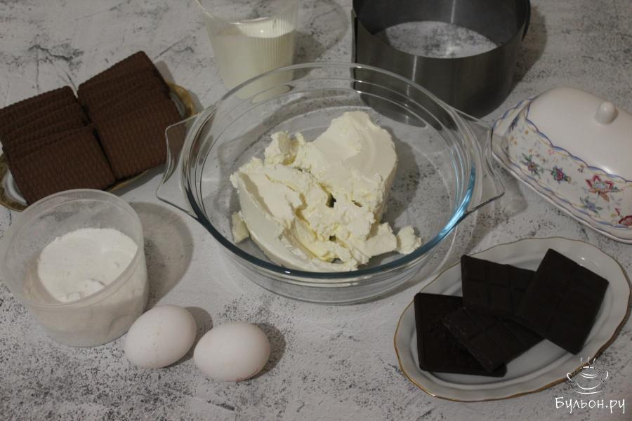 1. Данное количество ингредиентов рассчитано на небольшой чизкейк, поэтому вам понадобится разъемная форма небольшого диаметра. Я установила диаметр на 16 см. Также заранее достаньте все продукты, кроме сливочного масла, из холодильника, они должны быть комнатной температуры.