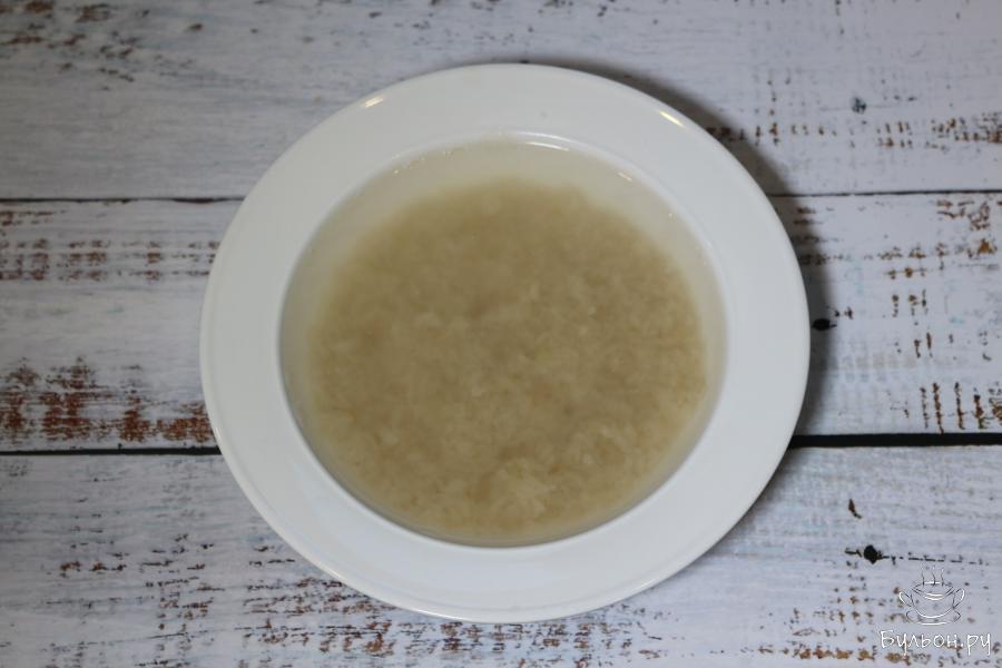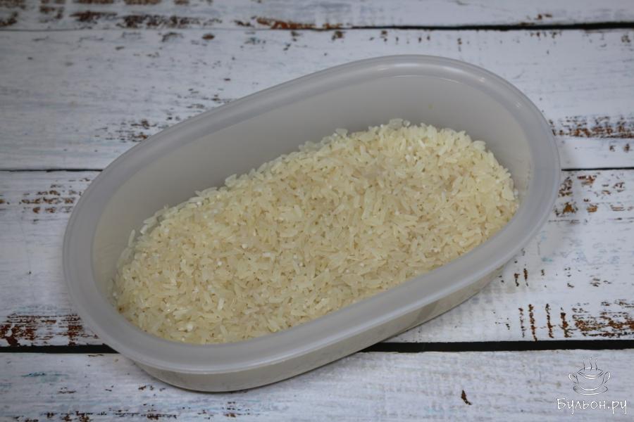3. Переложим рис в миску или любую другую глубокую емкость, зальем рис водой и оставим так на 1 час, чтобы рис впитал в себя влагу.