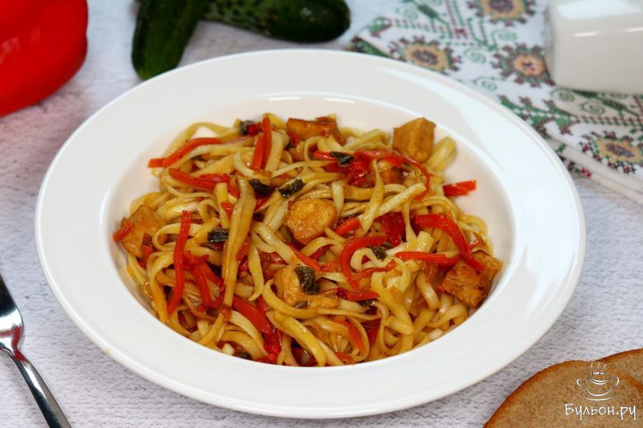 Многие предпочитают готовить простые блюда. Подают на стол обычные отварные макароны и жаренную курицу, и может просто нарежут овощи. Да, такие блюда имеют места быть, но ведь скучновато как-то, неправда ли. Можно приготовить с этими ингредиентами не намного сложнее блюдо, но при этом оно не будет казаться скучным и обыденным. Оно будет многообразным, сочным, очень ароматным. Приготовьте один раз лапшу удон курино-овощную, и вам больше не захочется обычных макарон и курицы.