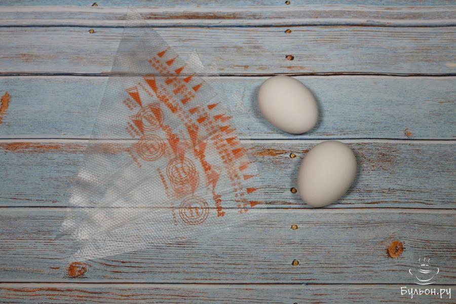1. Подготовим кондитерские пакеты. Обрежем их широкую часть, чтобы они стали небольшого размера. Отрежем кончики на уголках пакетов. Отрезаем в самом начале, чтобы потом удобнее было выкладывать готовый айсинг, так как в пакетики будет попадать воздух. Моем яйца в теплой воде с использованием соды.