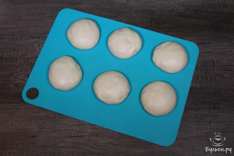 4. Теперь делим тесто. Здесь работаем по желанию. Можно слепить лепешки одинакового размера, можно разного, например, 1 большую и 3 маленьких. Все кусочки теста округляем, превращая в шарики. Снова убираем тесто под пленку, только теперь даем тесту отдохнуть час. Затем поверхность смазываем маслом.