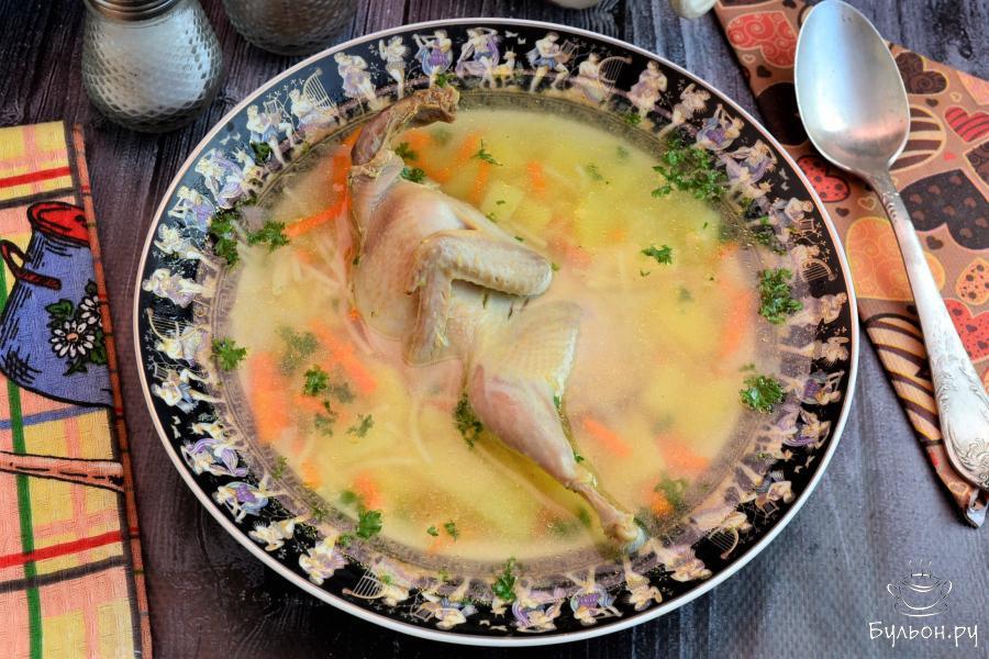 Всем известно, что и яйца, и мясо перепелок очень полезны и их нужно чаще включать в свой рацион. Перепелиное мясо диетическое, оно не создает нагрузку для пищеварительного тракта, содержит витамины. Очень полезно перепелиное мясо и блюда из него детям, так как в нем содержатся витамины группы В и витамин D, которые в комплексе могут защитить ребенка от развития рахита. Хочу предложить вам приготовить на обед очень вкусный и ароматный перепелиный суп, который обязательно понравится всем без исключения.