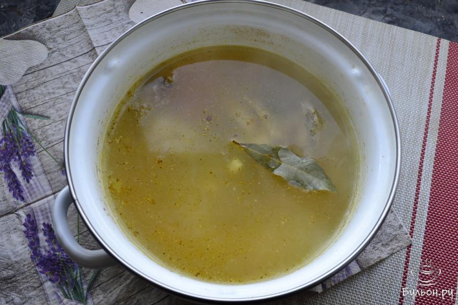 5. Всыпать мелкую вермишель, дать супу прокипеть еще несколько минут. Накрыть кастрюлю крышкой и оставить минут на 15 для того, чтобы вермишель дошла и блюдо настоялось.