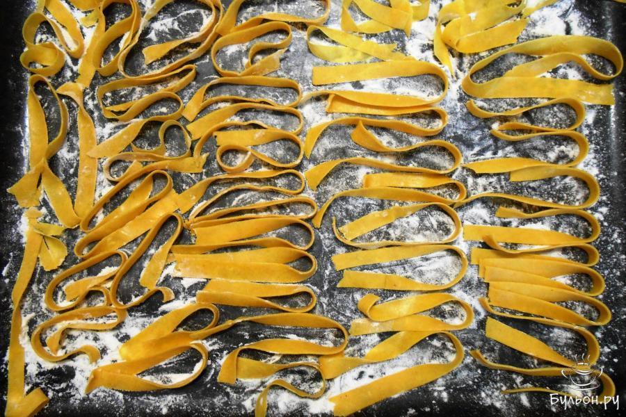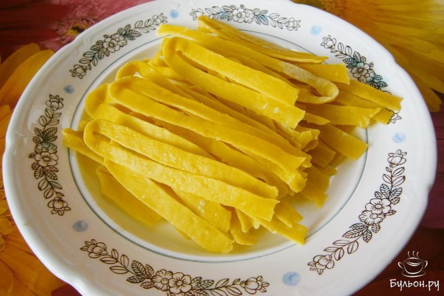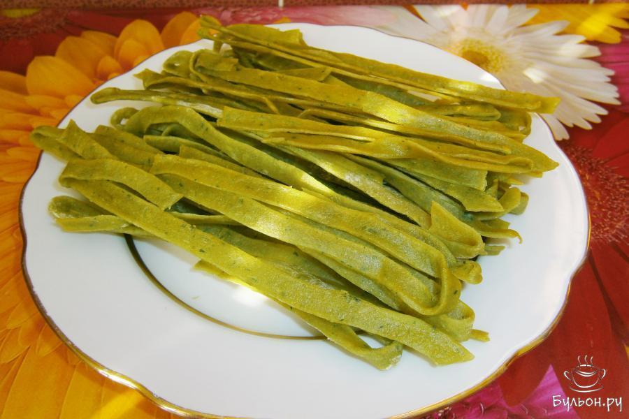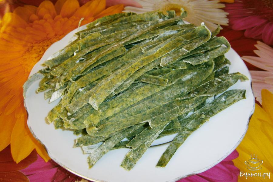 11. Лапша с соком петрушки. Петрушку (1 пучок) вымыть, просушить и прокрутить на мясорубке. Сок петрушки процедить через ситечко и добавить в тесто.