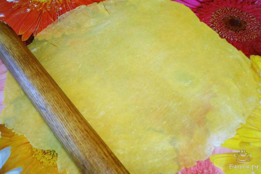 13. Лапша с тыквенным пюре. Тыкву (50 г) натереть на мелкой терке, поставить в микроволновку на 5 минут, на третей минуте перемешать. Отжать через марлю тыквенную кашицу и добавить в тесто.