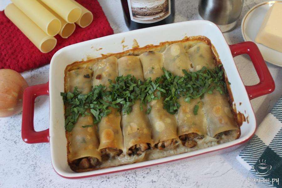 Итальянская кухня очень славится своими макаронными изделиями. Существует огромное количество разных видов пасты, например, такие как букатини, фарфалле, феттучини, фузилли, ригатони, лазанья, каннеллони и многие другие. Хочется отдельно поговорить о каннеллони, так как я предлагаю приготовить блюдо именно из этого вида макаронных изделий. По своей сути каннелони это макаронные трубочки, которые начиняют различными начинками. Я сегодня предлагаю приготовить каннеллони с курицей и шампиньонами. Получается очень нежно и вкусно. Попробуйте.