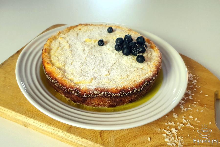 9. Творожная запеканка с кокосовой стружкой готова. Ее нужно немного остудить. Подавать в теплом или холодном виде. Приятного аппетита.