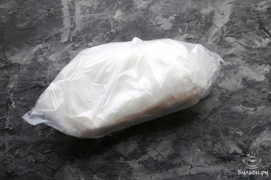4. Плотно завернуть сало в пергамент, а затем, выложить в два целлофановых пакета, которые крепко завязать, выпустив воздух. Поместить сало в кастрюлю с холодной водой, которую довести до кипения. Далее, варить сало при слабом кипении, с прикрытой крышкой не менее 1 часа.