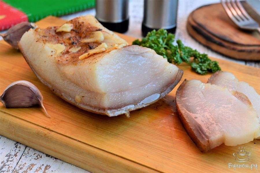 Хочу предложить вам рецепт очень вкусного сала, которое можно сварить в пакете. Сало получается нежным, мягким и ароматным, его можно употреблять и в теплом, и в охлажденном виде. Второй вариант хорош для бутербродов, в которых лучше всего использовать черный хлебушек и острую горчицу. Сало для этого рецепта лучше выбирать не слишком толстое, можно с прорезью, отлично подойдут баки, грудинка, пузанина. Рецепт совершенно простой, но я рекомендую приготовить эту закуску, очень вкусно.