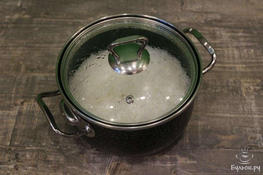 1. Рис промоем 3-4 раза, затем переложим его в кастрюлю, добавим воду. Кастрюлю закроем крышкой и поставим ее на плиту. Рис готовим строго под закрытой крышкой.