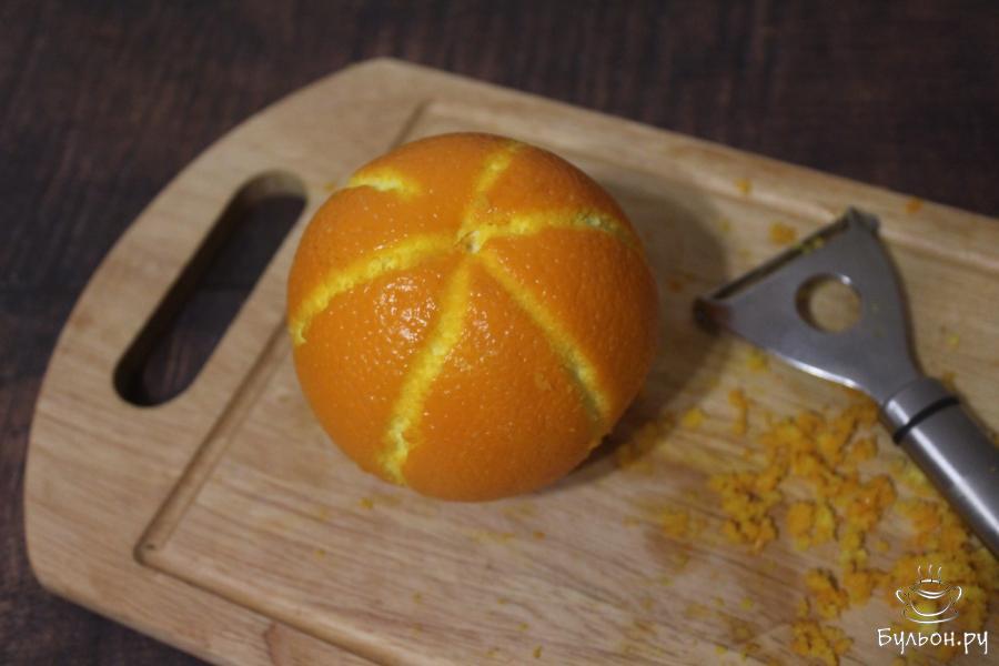 2. Очень тщательно моем кожуру апельсина, поскольку цукаты будут готовиться и потребляться вместе с кожурой. Теперь возьмем овощечистку и путем проведения петелькой по кожуре сделаем надрезы от цветоножки к противоположной стороне.