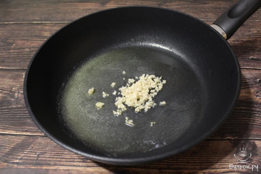 1. Возьмите сотейник или сковороду поглубже и растопите в выбранной посуде брусок сливочного масла. На этом маслице обжарьте измельченный чеснок в течение 1-2 минут, по кухне должен распространиться приятный аромат.